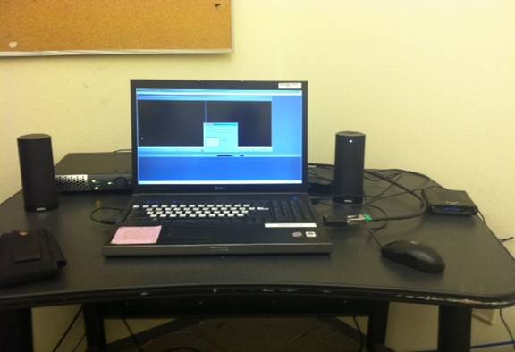 The speakers for monitoring audio are next to the laptop but you also have audio monitoring in the rack for testing live audio with out turning on the laptop.