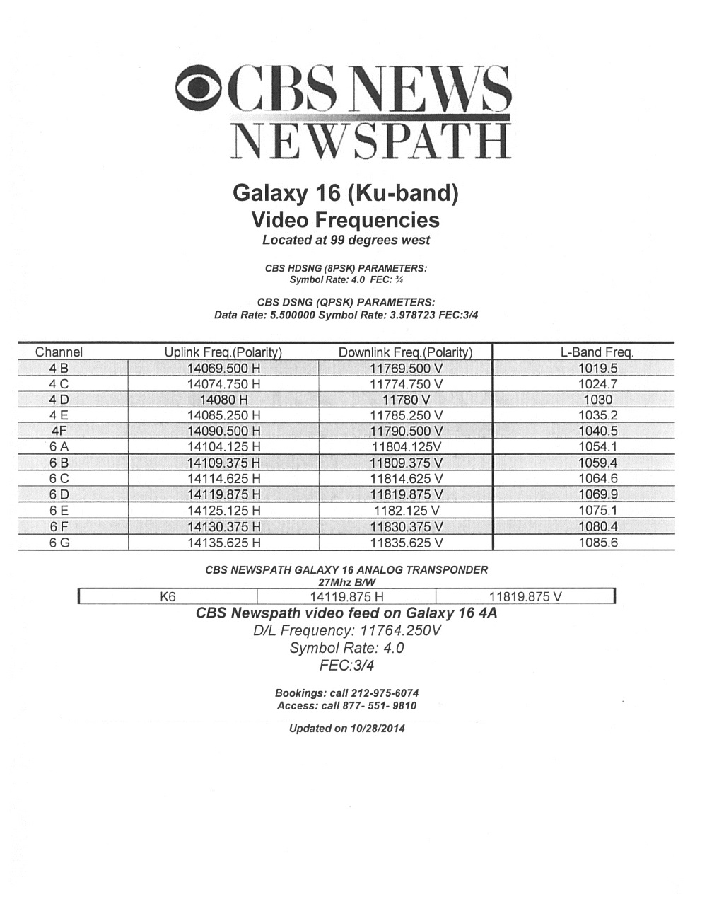 PDF of: Galaxy 16 Frequencies and much more. With pictures of Arc and contact numbers.
